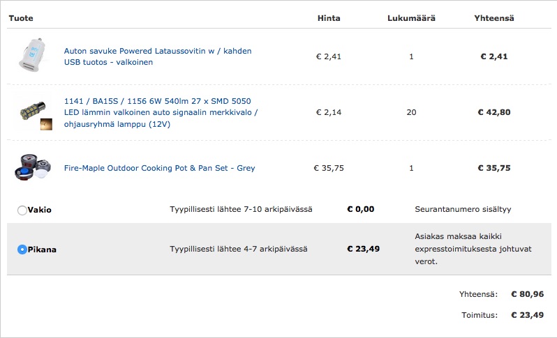 Onko tuo toimitustapa nyt sitten EMS, vai joku muu, niin sitä en tiedä.